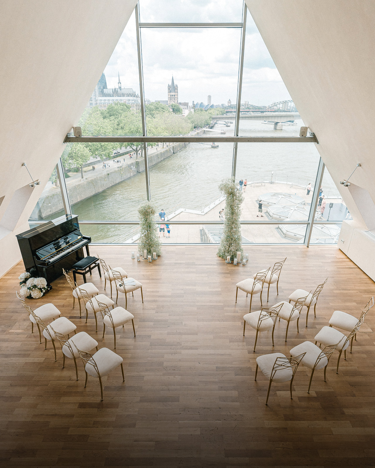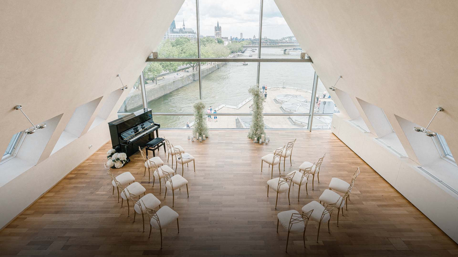 Die Bel Etage ist das Herzstück unserer Veranstaltungsräume. Mit Blick über die Dächer Kölns feiern Sie hier stilvoll und vielseitig – ob elegant oder ausgelassen. Die galerieartige Empore schafft einen separaten Bereich, etwa als Trauzimmer oder Spielzimmer. Der Blick auf Dom und Rhein begeistert bei jedem Wetter.